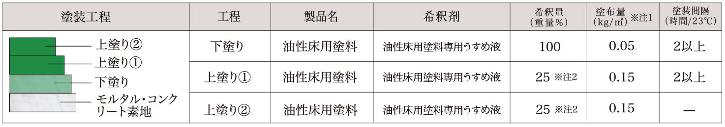 - 油性床用塗料 標準塗装使用(未塗装コンクリートの場合) -